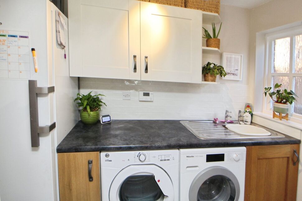 The property offers three reception rooms. The lounge includes a bay window, providing ample natural light and opens on to the dining room. The dining room is open-plan to the kitchen and has direct access to the garden, perfect for hosting social gatherings or enjoying a quiet evening at home. The solid oak kitchen units are complemented by granite worktops, adding a touch of elegance to the space and there are also integral appliances. The kitchen also has garden access, making it easy to dine alfresco or keep an eye on children playing outside. Additionally there is a utility room off the kitchen. The property has a third reception room which would make an ideal home office or play room and this has access to a downstairs WC.