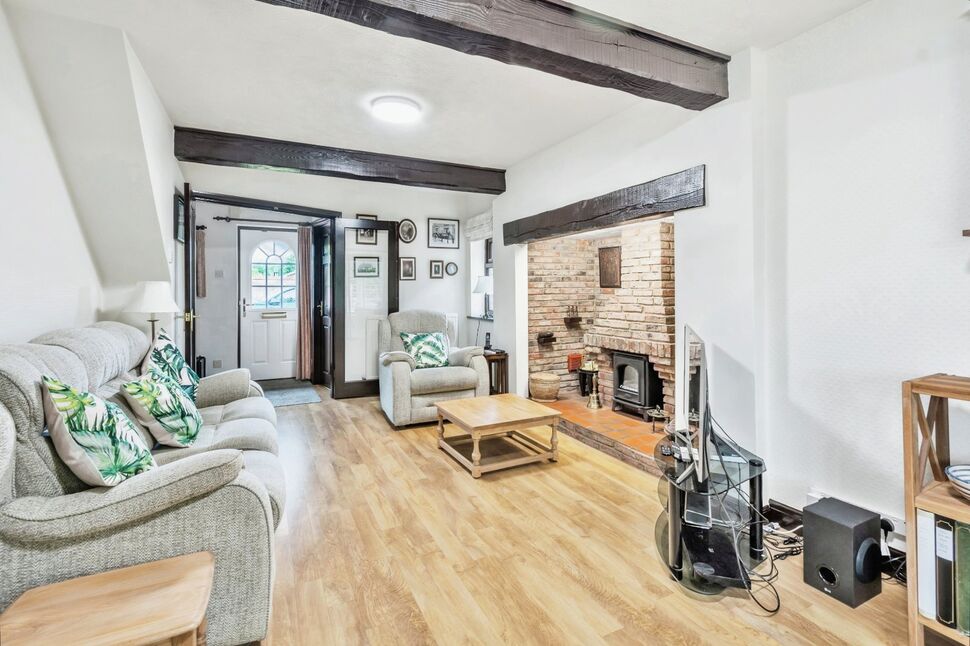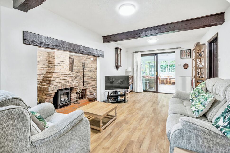 Internal double doors. Brick Inglenook fireplace with a tiled hearth and wooden mantle. Gazco 'Stockton' Electric stove. Karndean flooring. Wooden beams. Window to the front aspect Patio doors giving access to the conservatory.