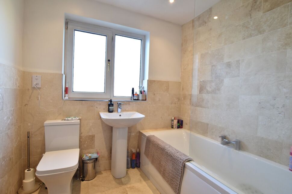 To the first floor are three generous bedrooms, and family bathroom which is complete with a modern white suite with shower over the bath and attractive stone effect tiling.