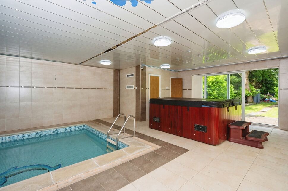 Tiled walls and flooring, central heated radiators, swimming pool, hot tub/jacuzzi, UPVC window to front, UPVC sliding doors to rear.