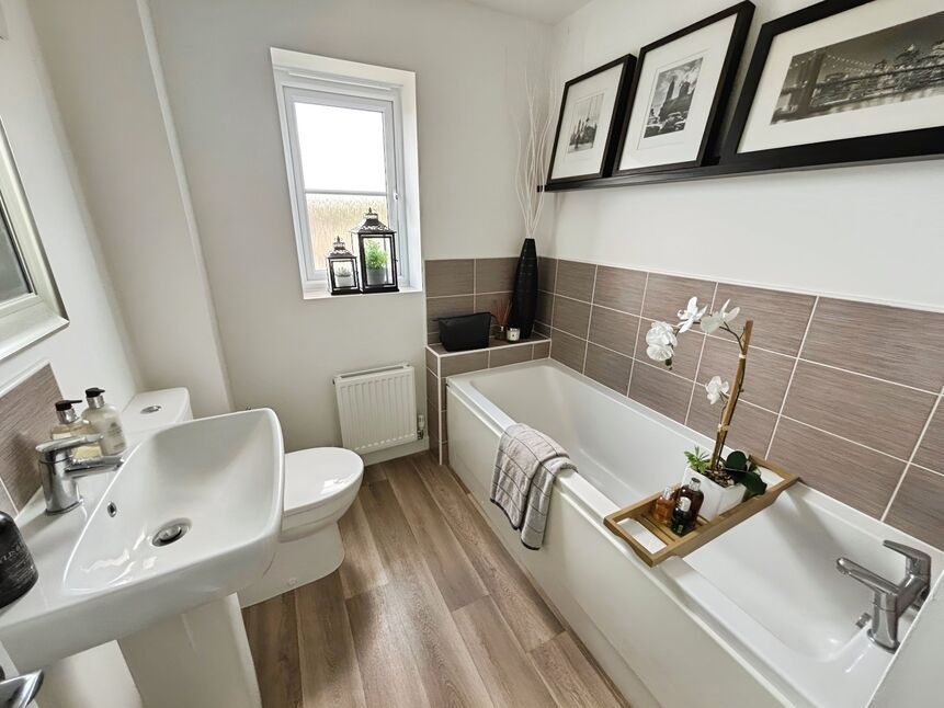 A three piece suite of bath, low level wc and wash basin. Double glazed window and radiator.