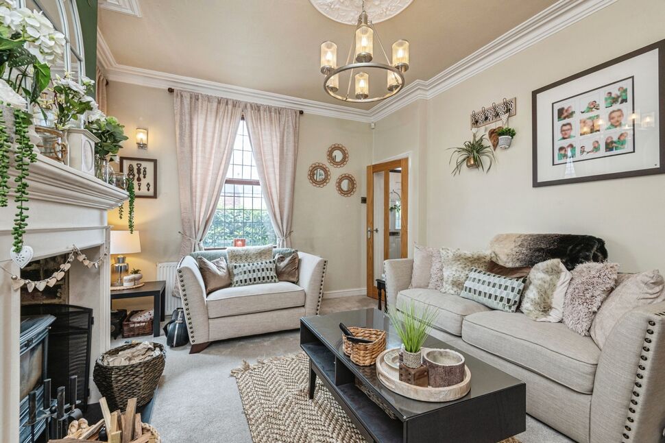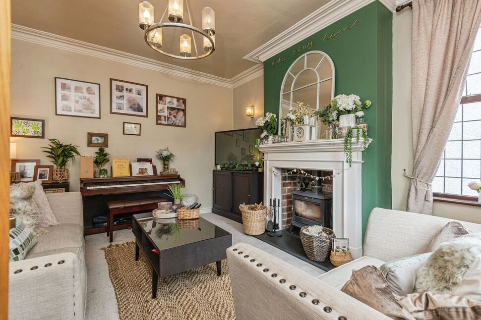 Double glazed leaded windows to the front and side elevation. Neutrally decorated with feature wall and coving to the ceiling. Stunning fire place with wood stove and surround. Gas central heating radiator.