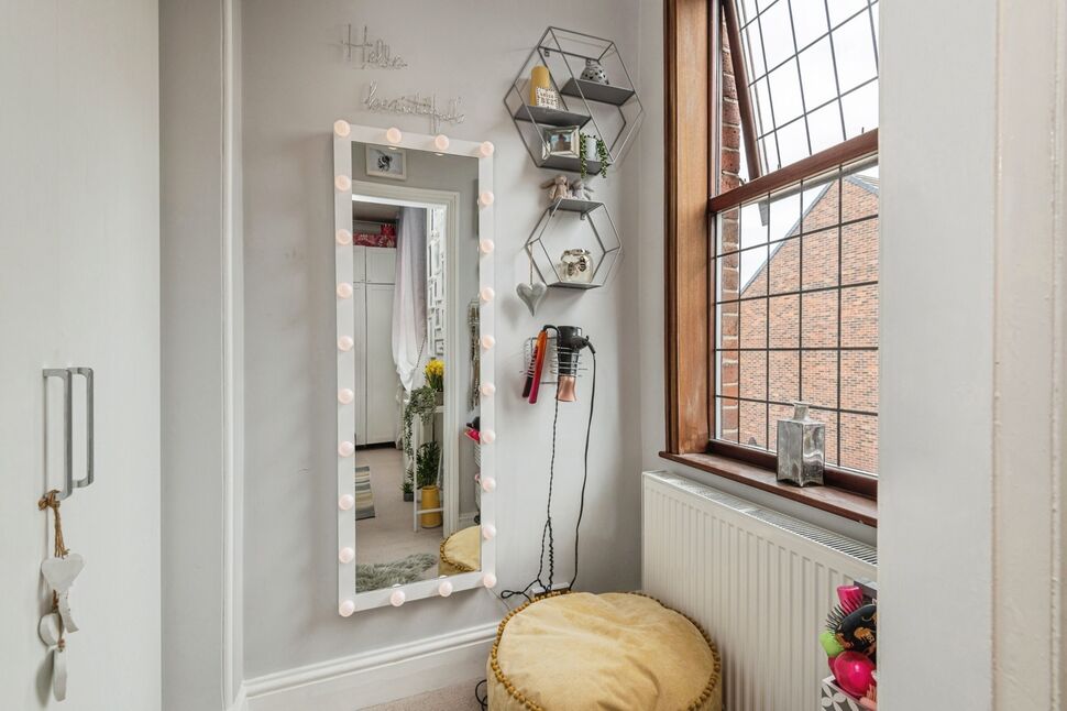 Fantastic sized master bedroom including a built in media unit, double glazed leaded window overlooking the front elevation, tastefully decorated with coving, leads onto dressing room with built in storage cupboard, double glazed leaded window, neutral décor, gas central heating radiator.