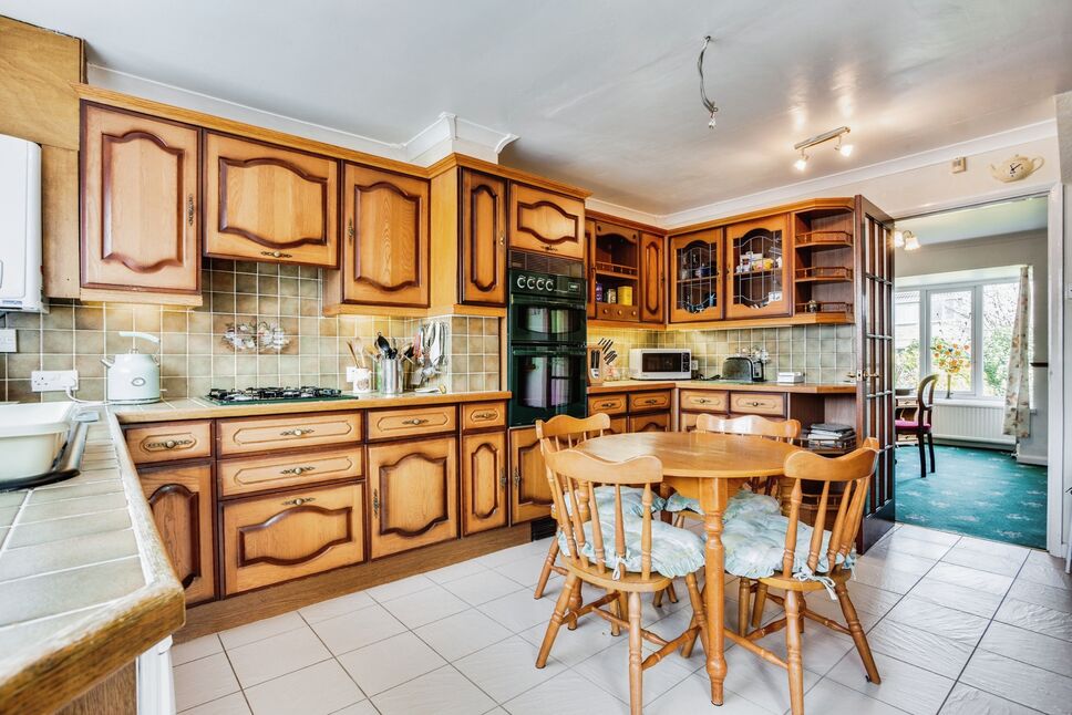 Fitted kitchen comprising of wall and base units with 1 1/2 sink/drainer and complementary worktops. With integrated double oven, gas hob and cooker hood over. There is space and plumbing for a washing machine, gas central heating radiator, integrated fridge with separate freezer below. Fully tiled floor, rear entrance door and UPVC double glazed window to the rear aspect.
