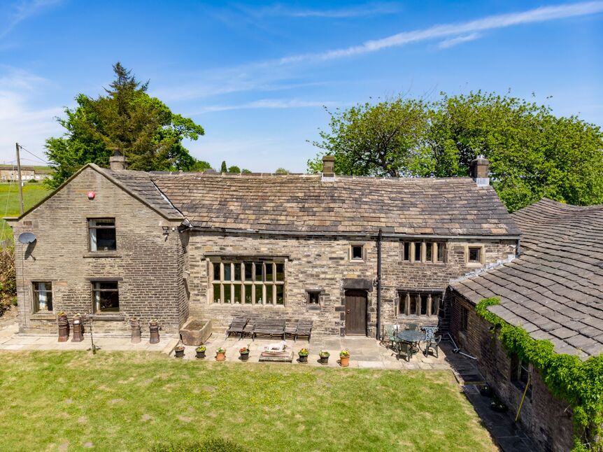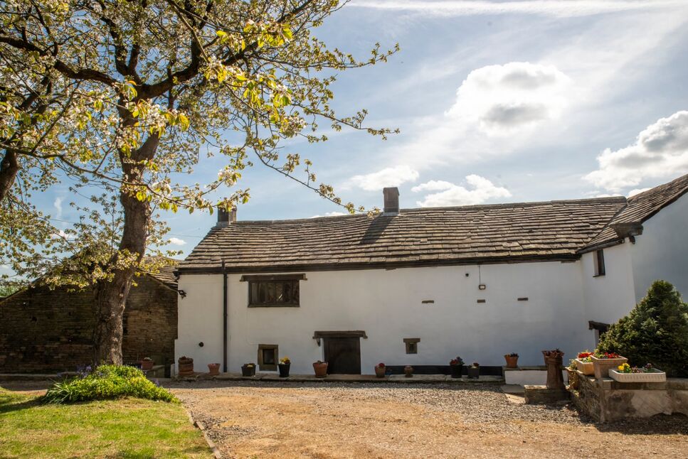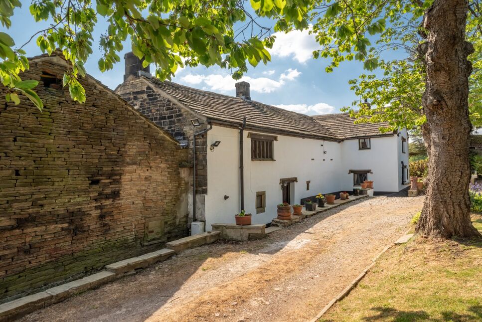 Jaque Royd Farm is a rare and magnificent Grade II listed Yeoman's residence set amidst approximately 7 acres of picturesque West Yorkshire countryside. With origins dating back to circa 1485, this substantial timber-framed home boasts a date stone of 1680, evidencing its rich architectural lineage.
