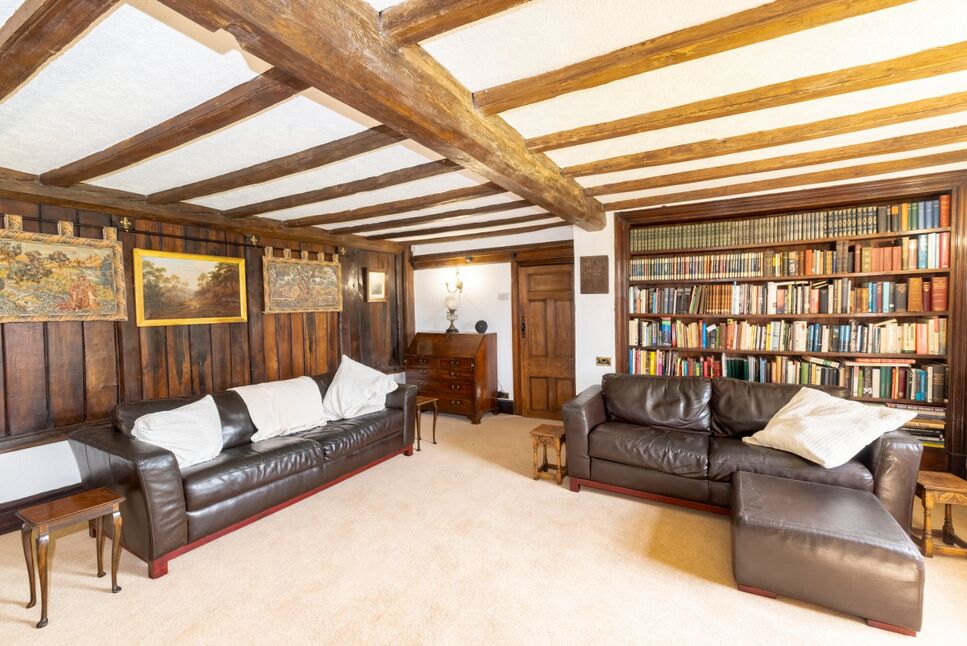 A beautifully preserved upper-level space with exposed beams and views over the surrounding countryside. This gallery links key first-floor rooms and adds architectural depth, offering a quiet retreat within the historic heart of the home.