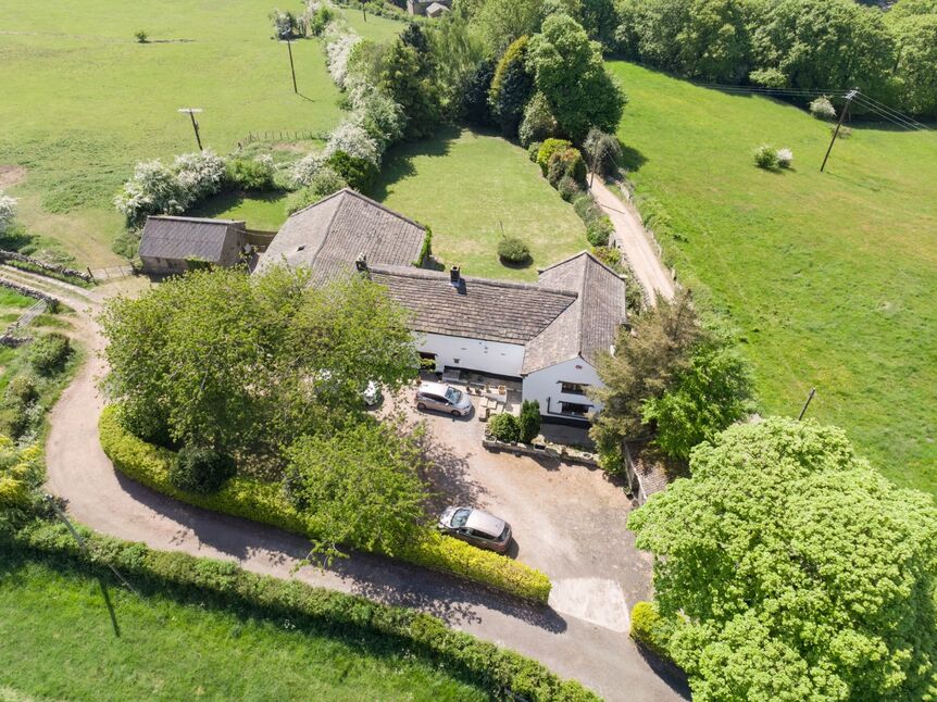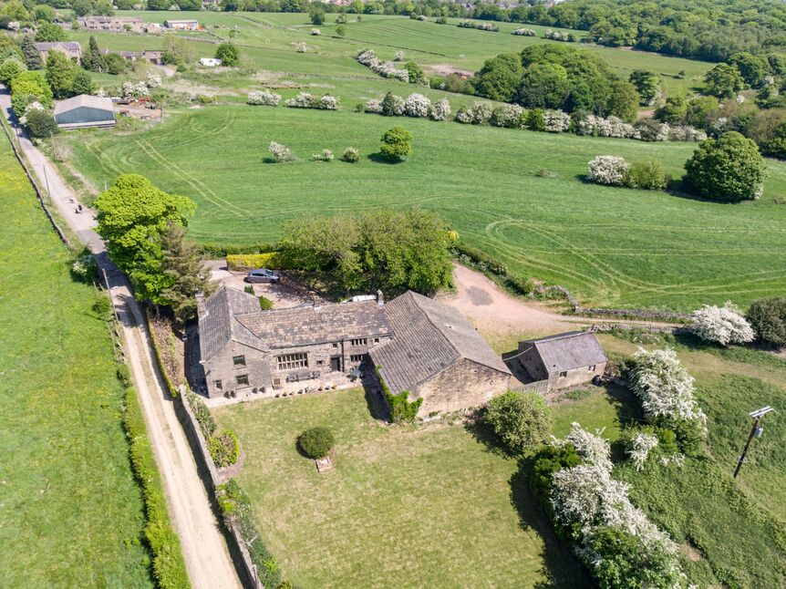 Set in approximately 7 acres, Jaque Royd Farm includes formal gardens, multiple paddocks, and mature trees and hedgerows. The property's commanding position offers far-reaching views over the surrounding West Yorkshire countryside and moorland, yet remains accessible to amenities in Shelf and Halifax.