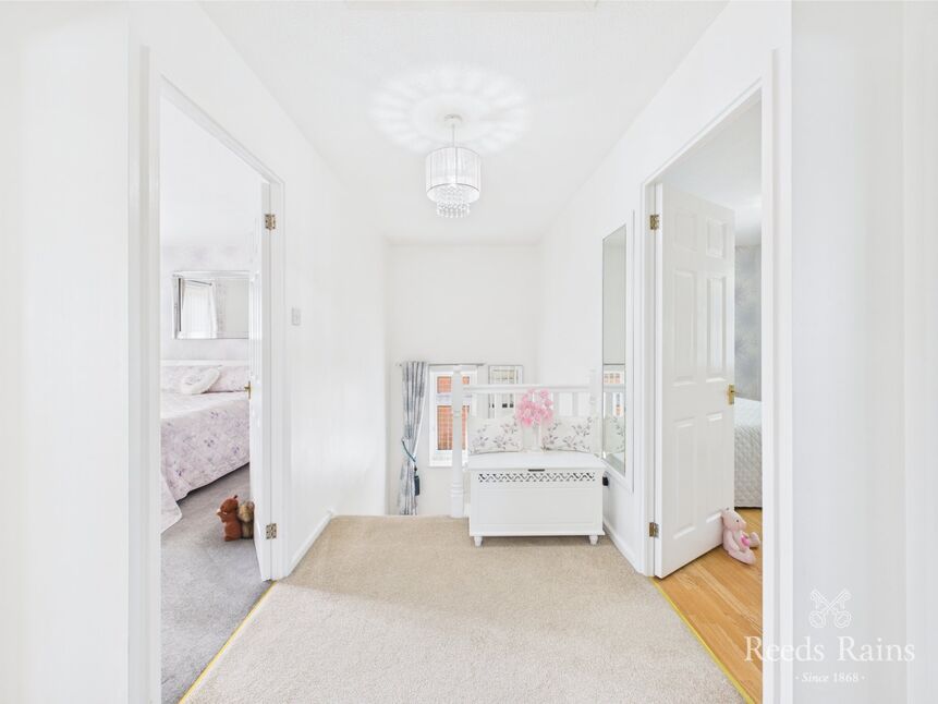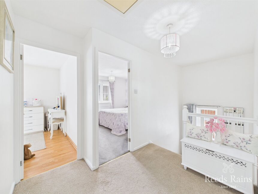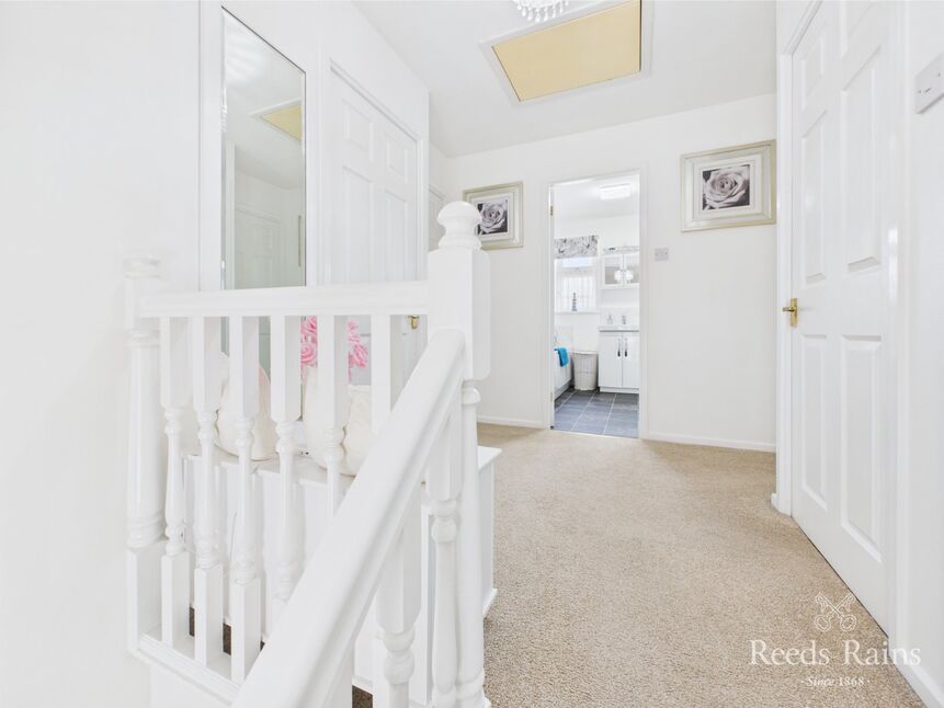 A spacious central landing that provides access to all four bedrooms and the family bathroom. A side-facing double-glazed window brings in natural light, and there's access to the loft for additional storage.