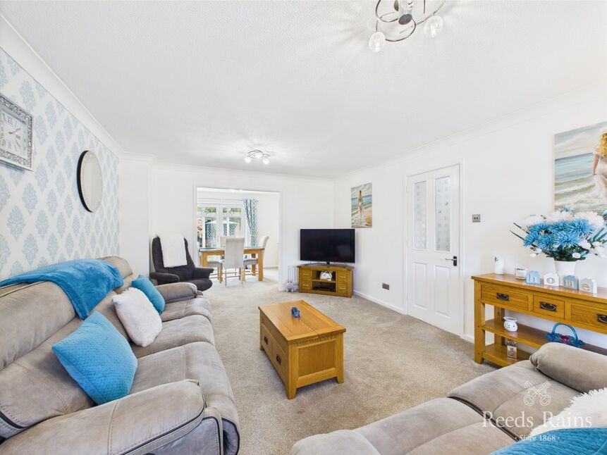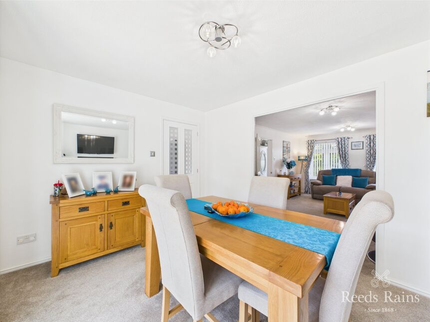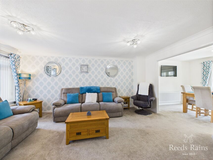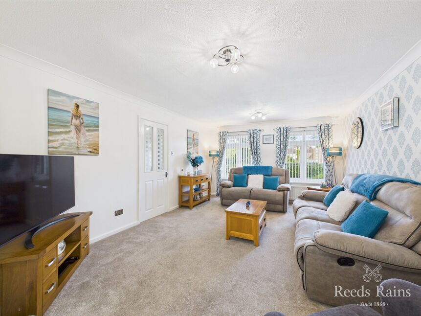 A generous and beautifully presented reception room with dual front-facing double-glazed windows creating a light and airy ambiance. This relaxing space flows seamlessly into the dining area, making it ideal for both everyday living and entertaining.