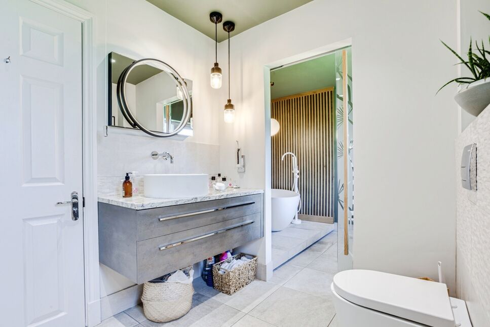 Separate room with free standing bath tub, heated towel radiator and uPVC double glazed window to the rear elevation.