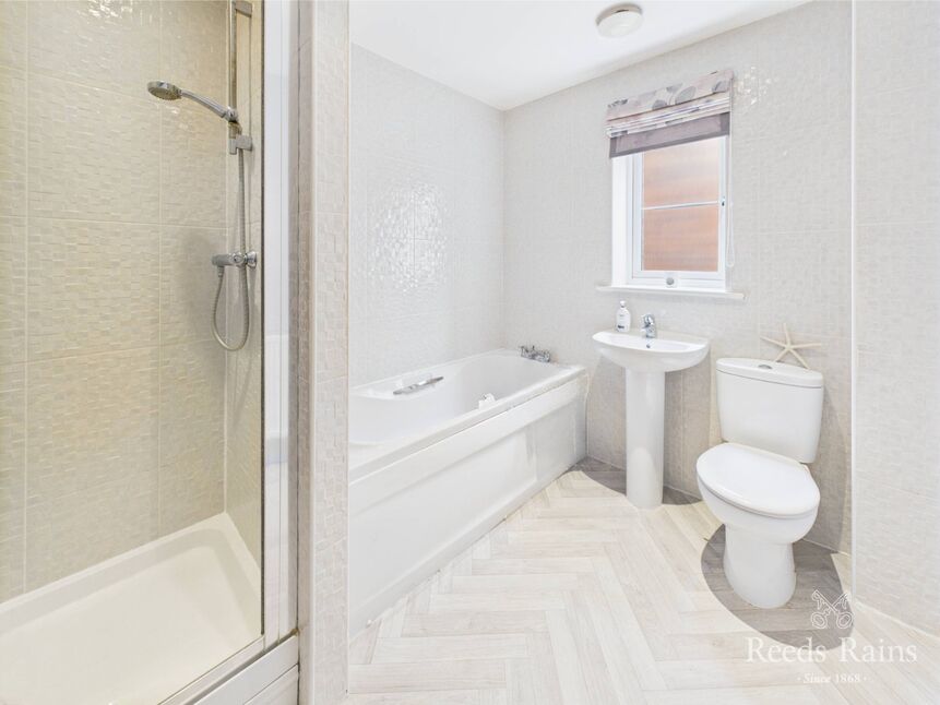 Upstairs, the four generously sized bedrooms provide ample space, with the master bedroom boasting luxury fitted wardrobes and an ensuite shower room. The family bathroom offers both a shower cubicle and a bath, ensuring convenience for all.