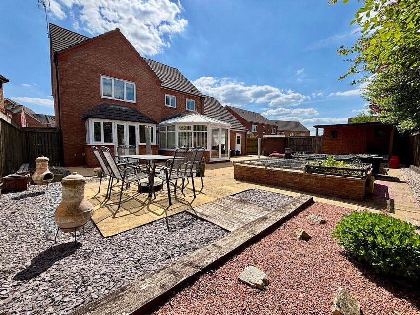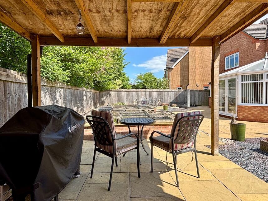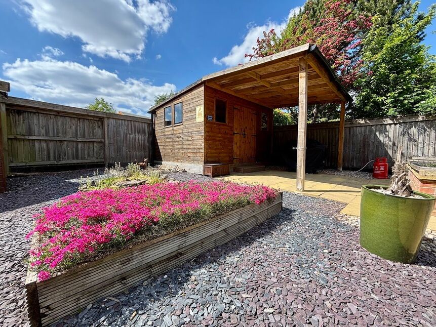 Externally, the low maintenance rear garden host a well-stocked ornamental fishpond, wood cabin with mains power, and various seating areas to enjoy the sunshine throughout the day.