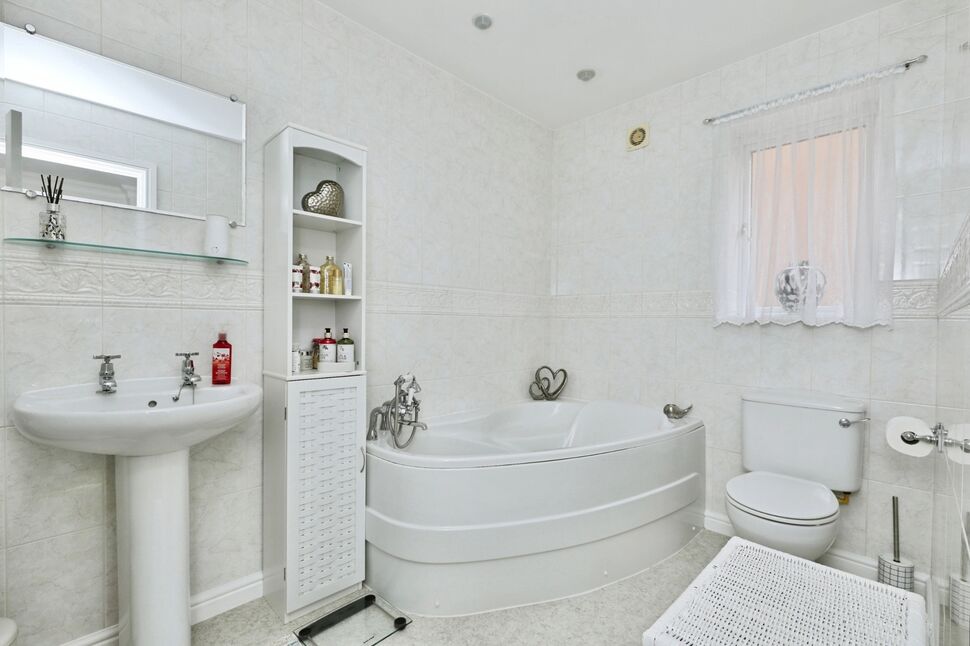 The three bathrooms cater to every need. There's a modern master en-suite with a heated towel rail and fully tiled walls, a family bathroom also with fully tiled walls, and an additional en-suite.