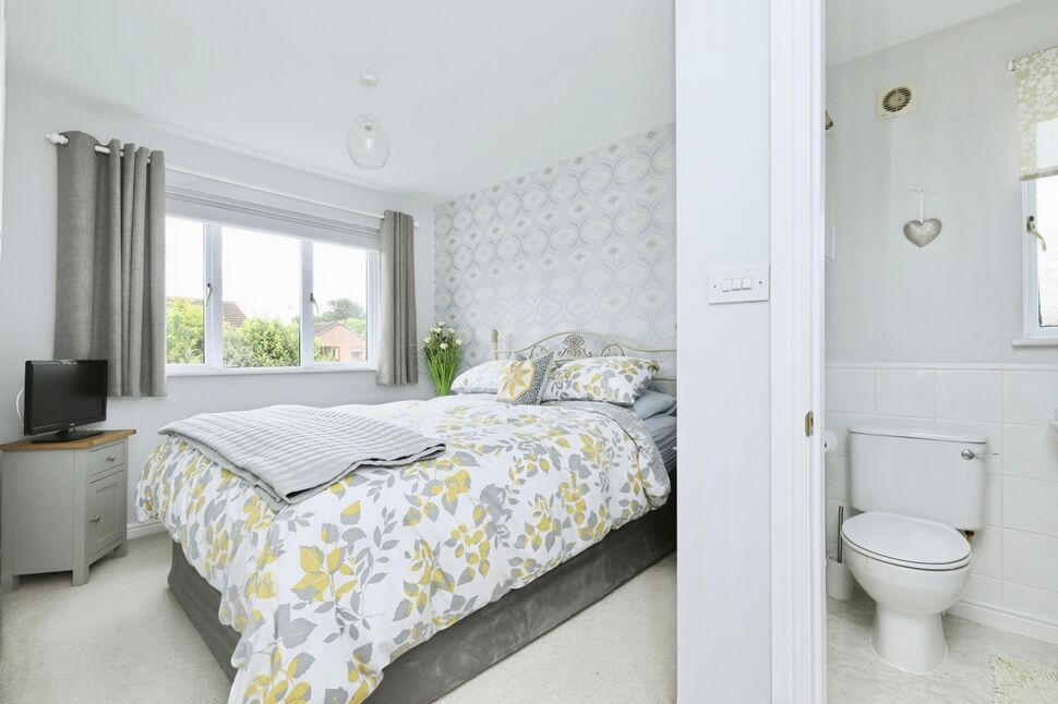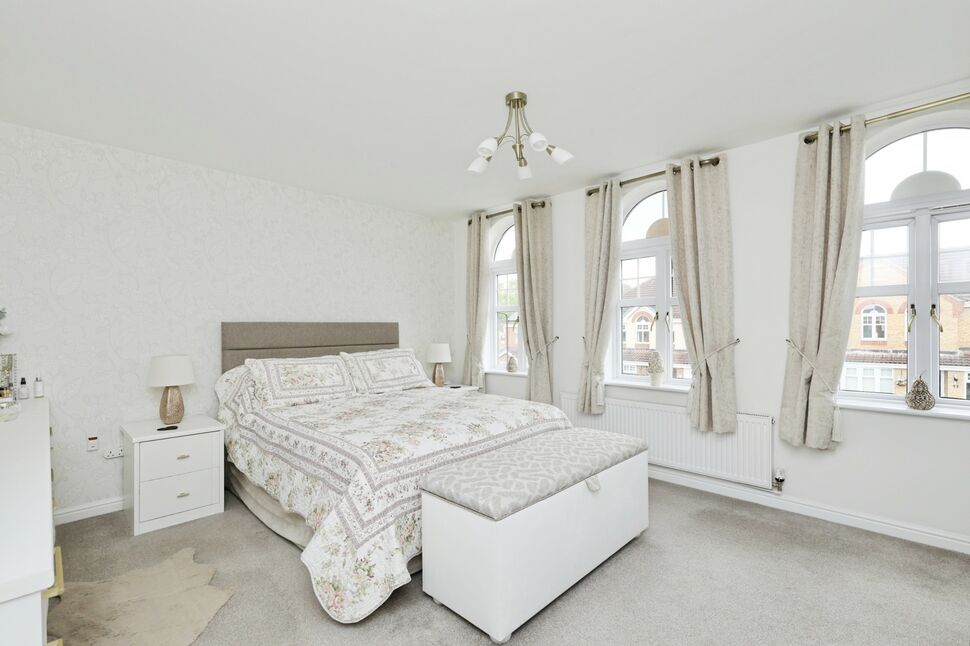 Fitted carpet, central heating radiator, walk in wardrobe, access to it's own en suite and rear facing double glazed window.