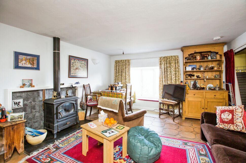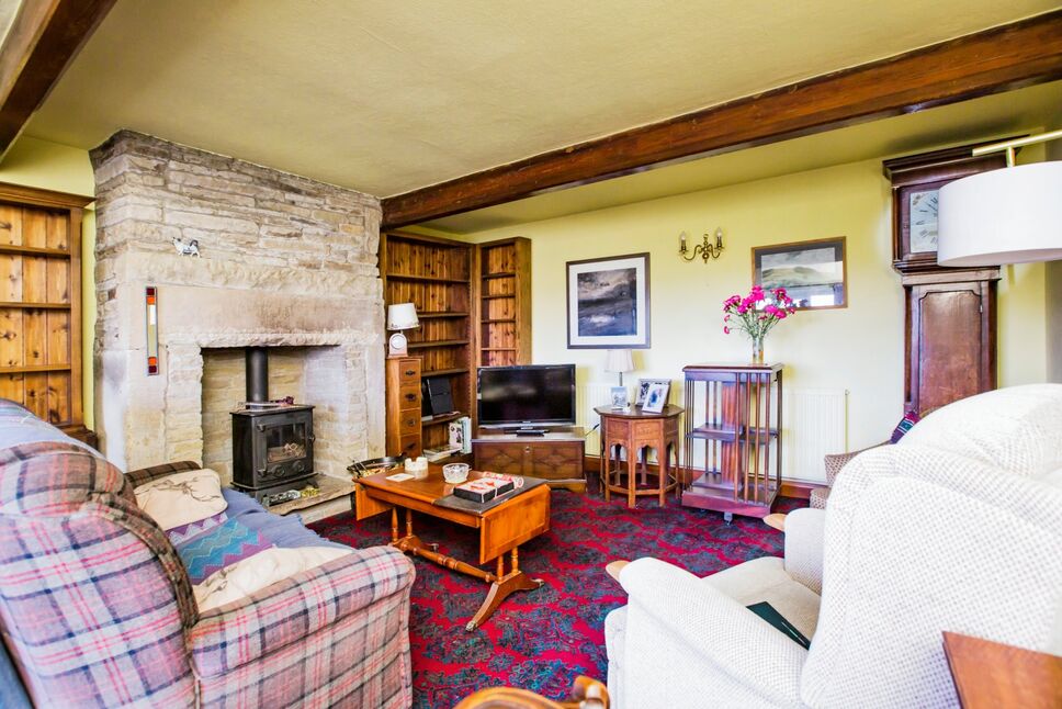 Second reception room with a log burning fire and a window to the front with countryside views.
