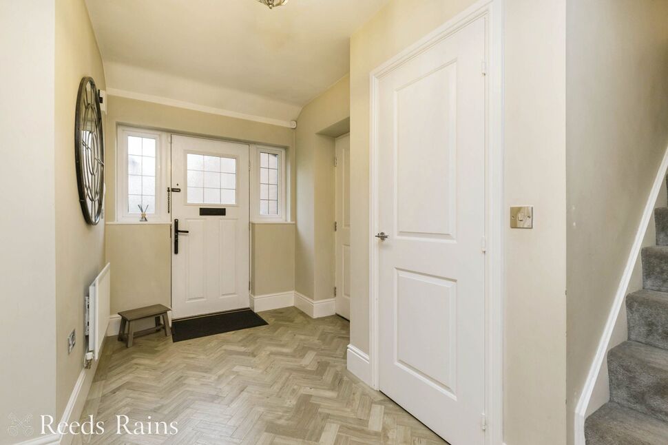Spacious and welcoming hallway which is accessed by a double glazed door. Radiator. Stairs leading off to the first floor with under the stairs storage cupboard. Amtico flooring.