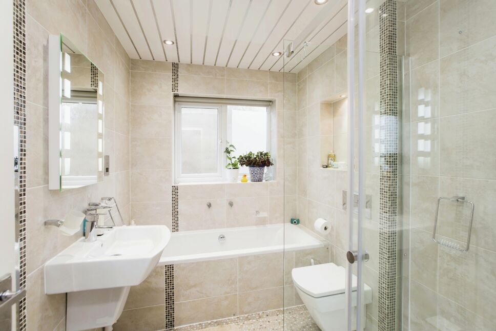 Found on the first floor is the family bathroom. There is a tiled floor and matching complementary tiled splashback area along with four piece bathroom suite comprising; bath, shower cubicle, wc and sink unit. Window to the side of the house.