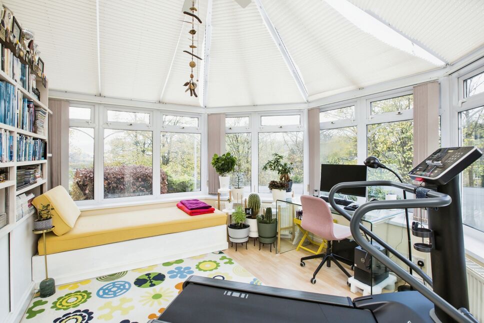 A lovely extension to the property is this sun room fitted with uPVC windows and patio doors leading to the rear garden. The room has built-in shelves and additional storage with sliding doors. There is also a built-in single day/lounging bed with under storage space.