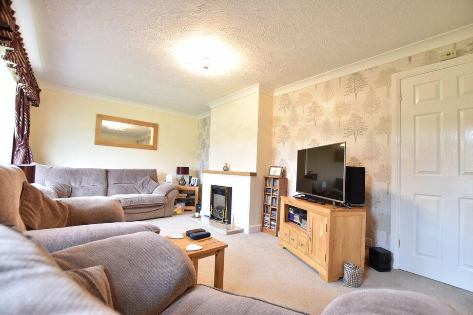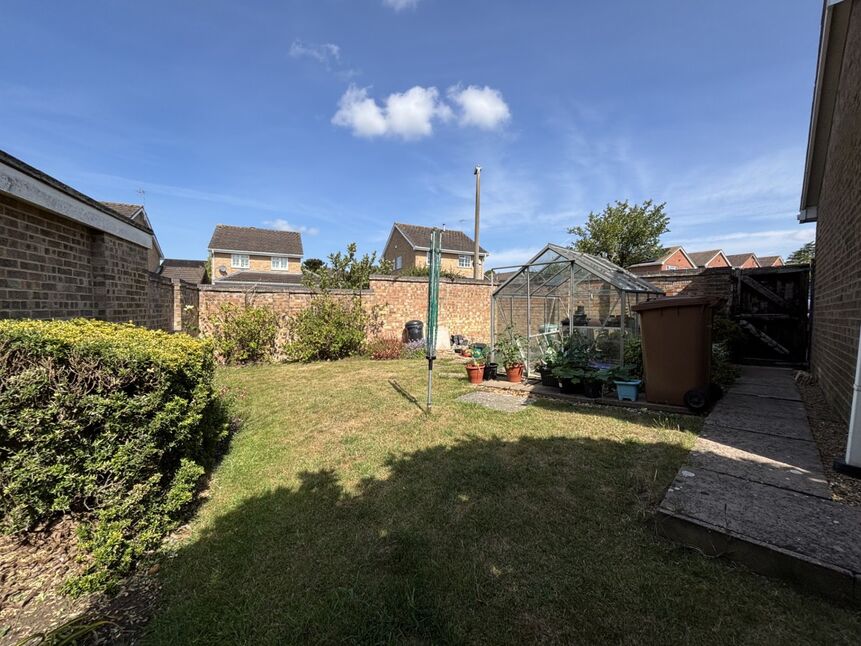The property is positioned in a pleasant corner plot, with the rear garden being mostly laid to lawn with well established borders, trees and flower beds. The extensive front garden is set mostly to lawn, with a pressed concrete driveway allowing parking for multiple cars, and up and over door leading to the garage.