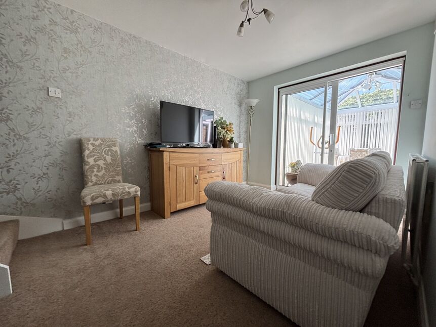 Beyond, is the dining area, presently used as snug, glazed sliding doors provide access to the large conservatory with a pleasing outlook over the south facing rear garden. An internal door gives access to the garage with W/C.