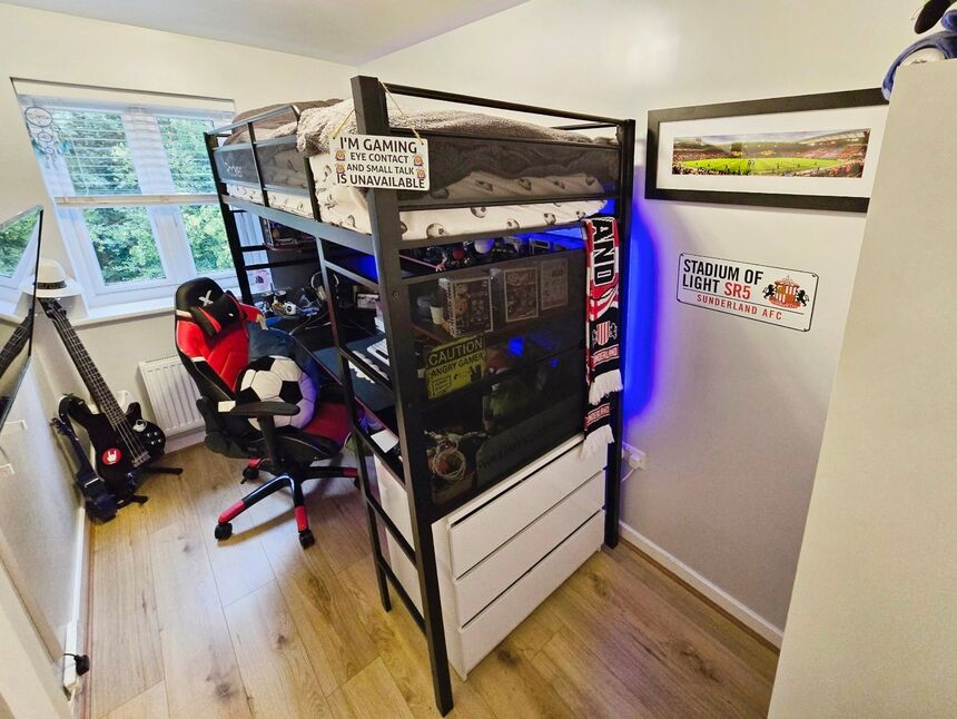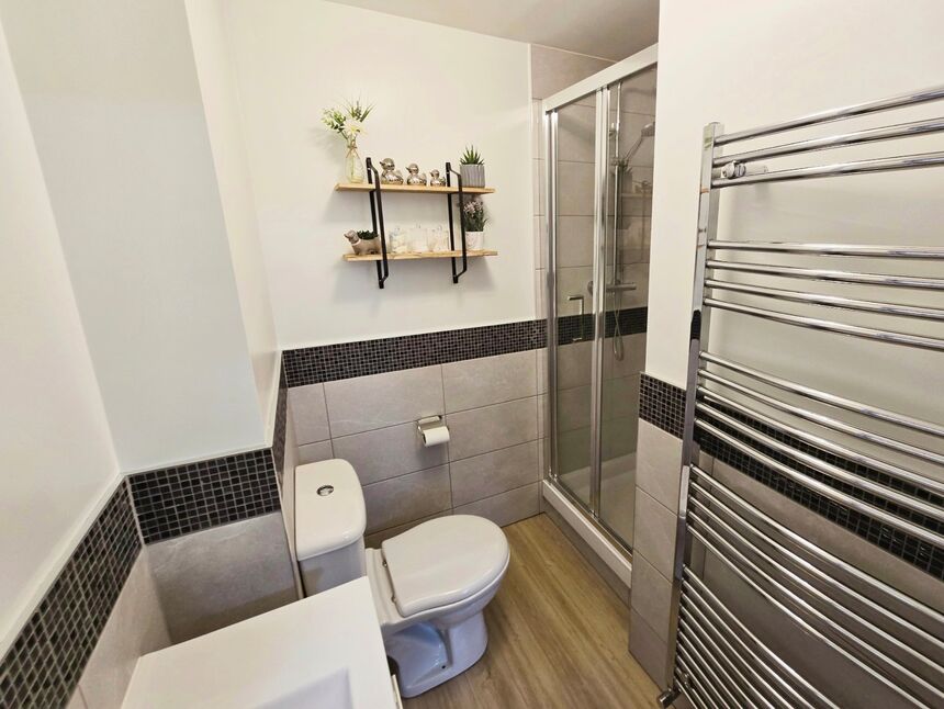 Upstairs, you’ll find a large master bedroom that boasts a generous built-in wardrobe and an en suite shower room for your comfort. The spacious second bedroom also features built-in storage, making it perfect for guests or children. A third double bedroom and a cozy single bedroom provide ample space for family and guests.