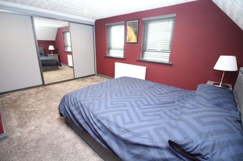 Fitted robes with sliding doors. Eaves storage.