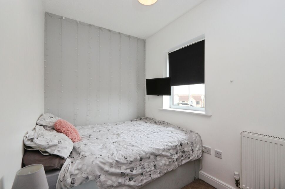Ground floor bedroom with fitted carpet, central heating radiator and rear facing double glazed window.