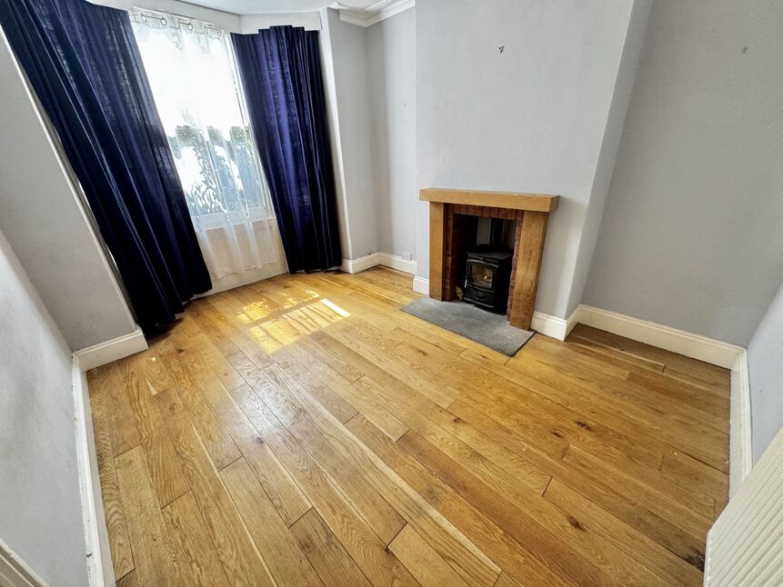 Sash bay window to the front elevation, radiator. Wood flooring and a radiator.