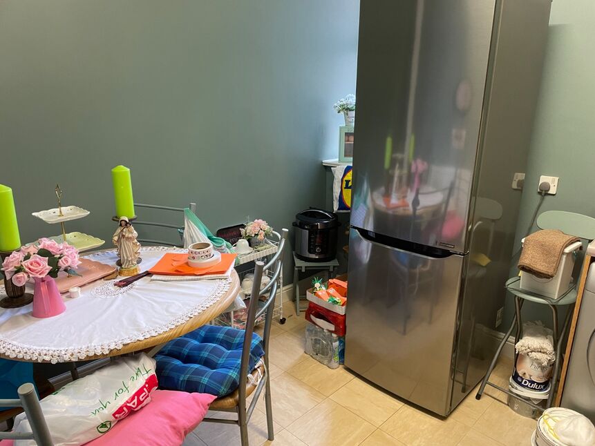 Fitted wall and base units with work top space over. Inset sink and drainer. Built in electric oven and gas hob. Space for fridge freezer. Central heating radiator. Double glazed window.