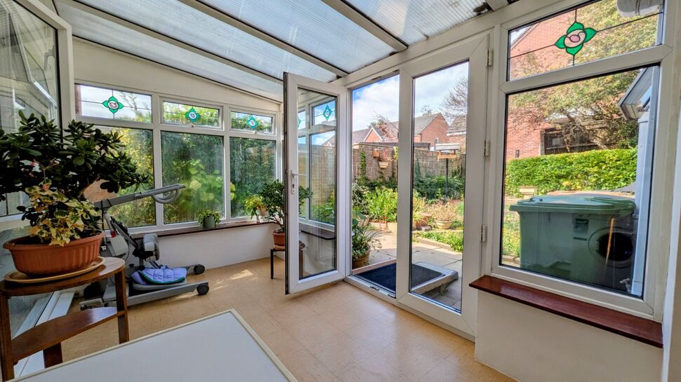 A glazed door grants access to the conservatory with W/C located off and 'French' doors opening to the rear garden.