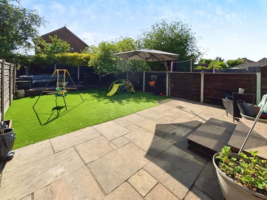 An enclosed rear garden with Astro turf. To the front is an enclosed garden with gate access.
