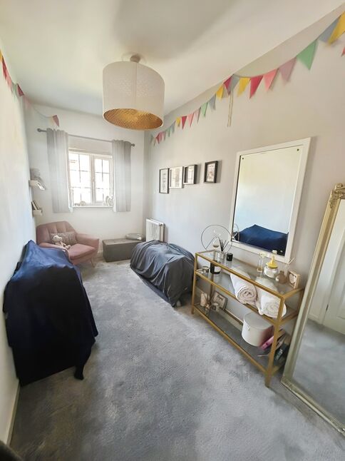 The second bedroom is fitted with a central heating radiator, a storage cupboard with loft access and a rear facing PVCu double glazed window.