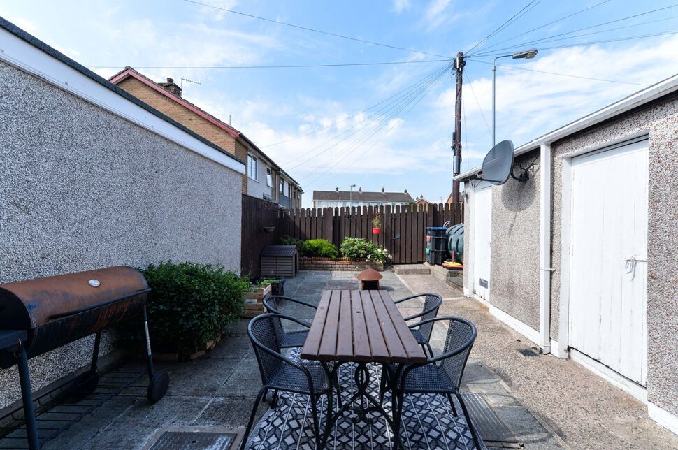 Brick pavioured garden to front.Enclosed garden to rear fully paved, PVC oil tank, outside light and tap, garden store with oil fired boiler.