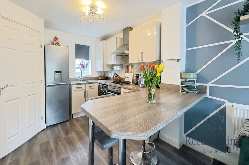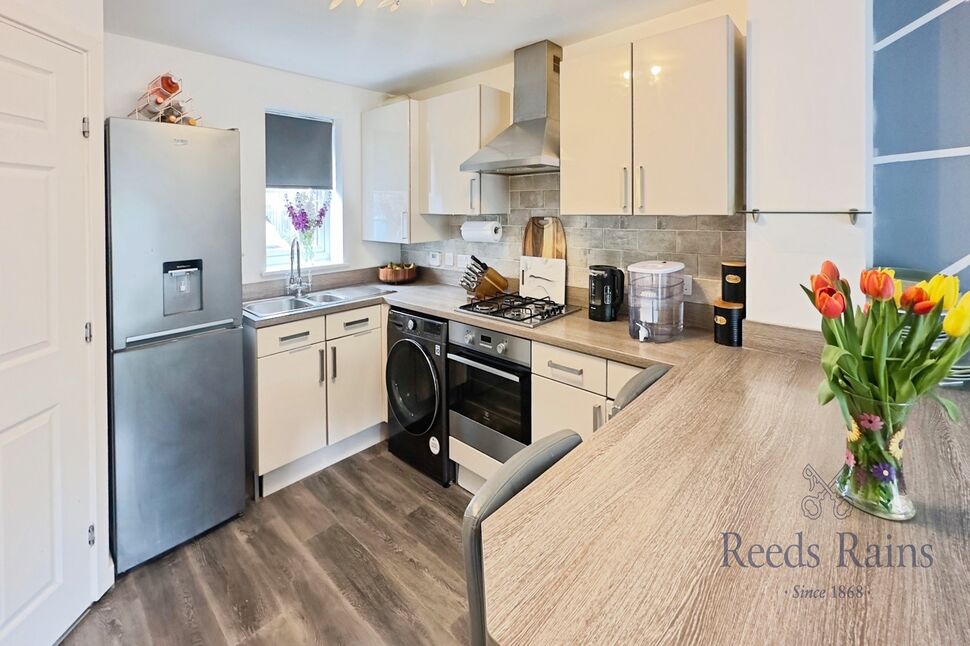 A well-presented, modern 2 bed End Terraced House located on the popular Staynor Hall development. The accommodation includes gas fired central heating system and comprises; Entrance hall, open plan breakfast kitchen with built in fridge freezer and cooking facilities, lounge with double doors to the garden and ground floor w.c. To the first floor are 2 double bedrooms and bathroom.