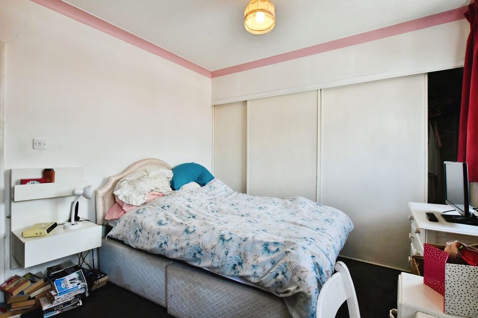 A generous double to the front, flooded with light from two double-glazed windows. Fitted wardrobes with sliding doors maximise storage, and feature coving adds a touch of character.