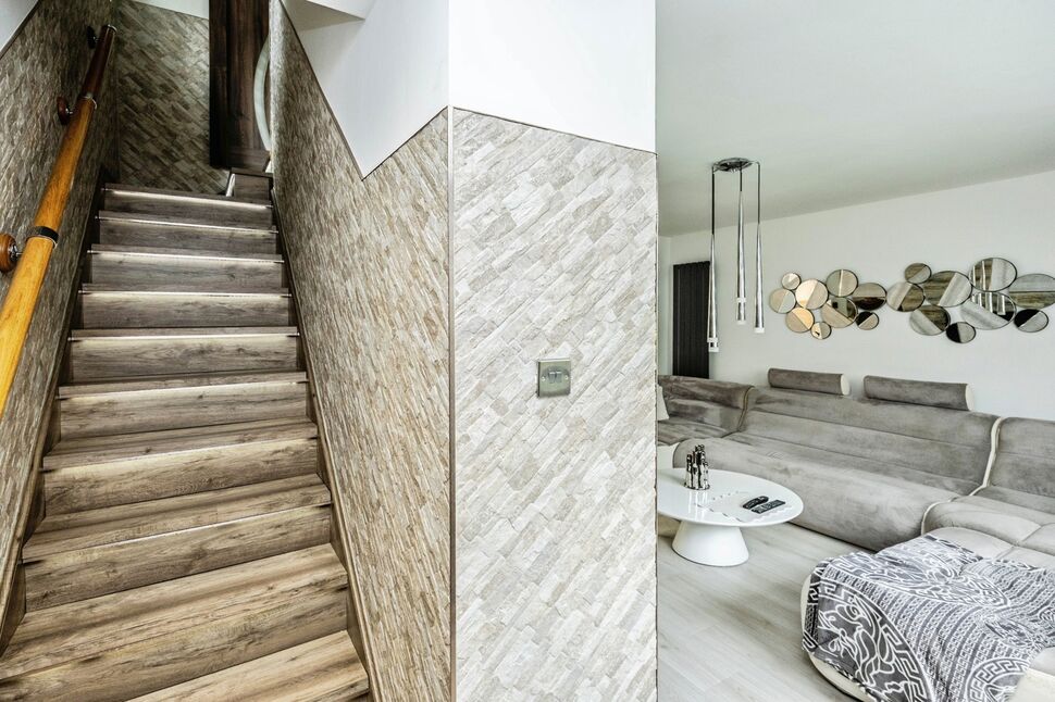 Opening with an attractive Composite entrance door and featuring a new staircase which rises to the First Floor with inset feature lights recessed to each step. Fitted with a contemporary panelled radiator and spotlights recessed to the ceiling.