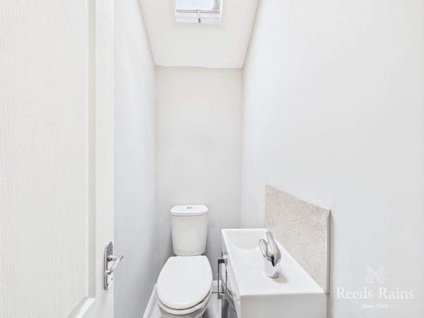 The first-floor cloakroom is a cleverly designed space, equipped with a modern two-piece suite in white. The vanity-mounted basin offers built-in storage, while the low flush WC provides added convenience—ideal for busy households.