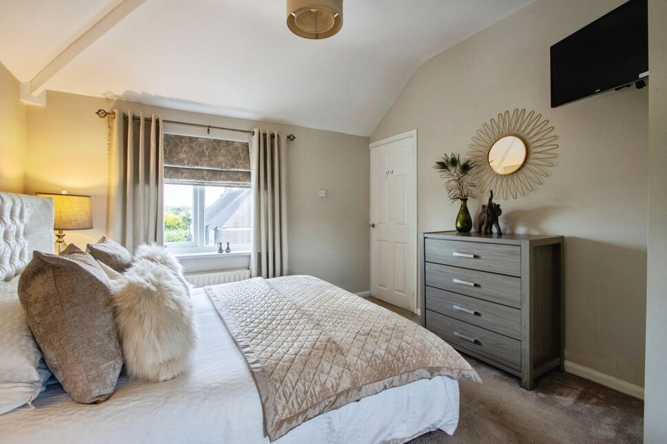 An impressive main bedroom having a central heating radiator and windows to the front and rear elevations.