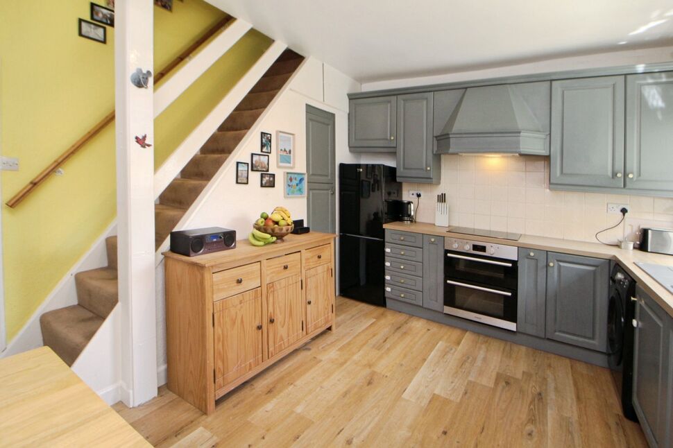 Fitted with a good range of wall, base and drawer units including integral dishwasher, built in electric oven, four ring electric hob with extractor over, roll top work surface, one and a half bowl sink unit with mixer tap and drainer, space for fridge/freezer, stairs to the first floor, under stairs cupboard and UPVC door to the rear garden.