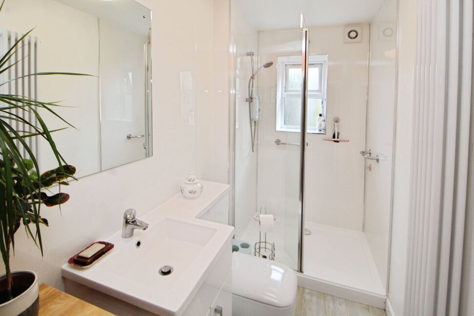 The house offers two well proportioned bedrooms; the first being a spacious double, presenting the perfect sanctuary for rest and relaxation, and the second, a single room that could serve as an ideal child's bedroom, home office or guest room. Adding to the appeal of this home is the modern shower room, complete with a white suite and wet wall panels, offering a touch of luxury and convenience.