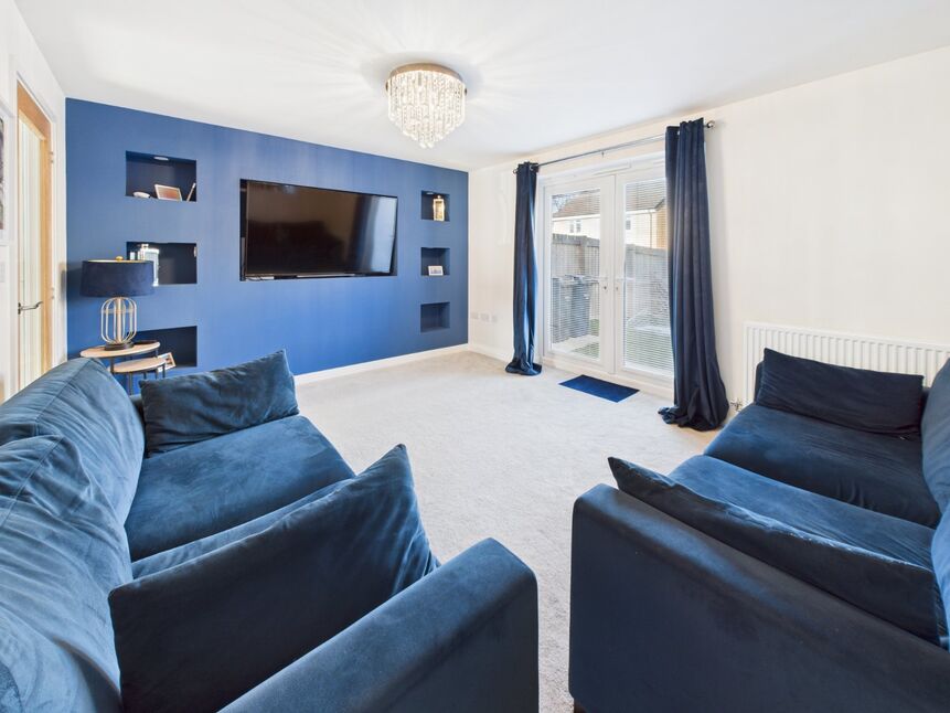 - Large lounge with media wall/doors to garden