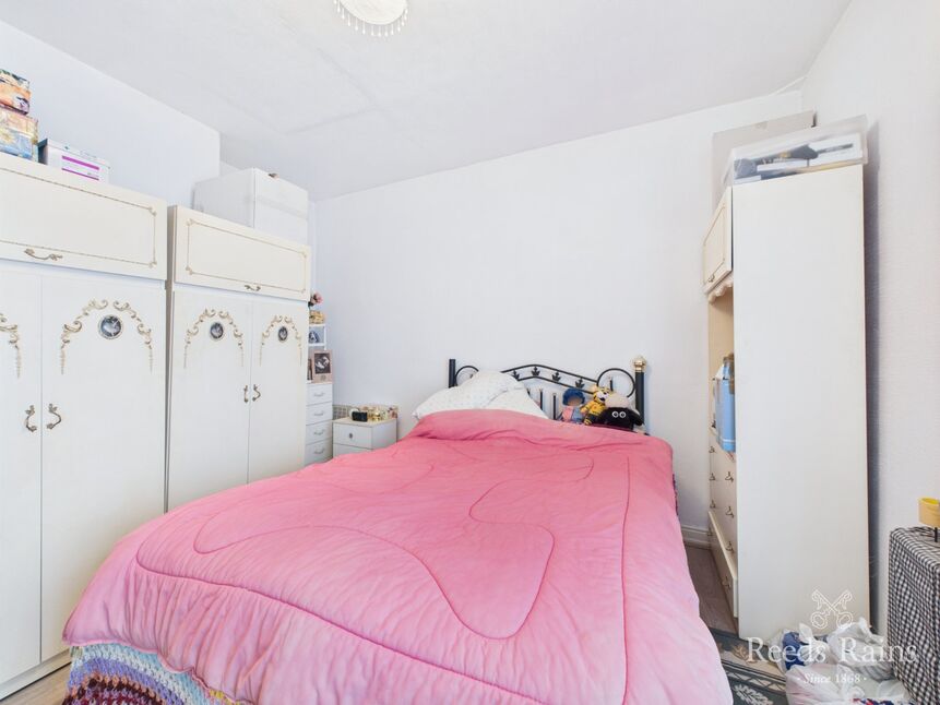 Positioned to the front of the property, the principal bedroom is a generously sized double room with a large double-glazed window that allows in ample natural light. A radiator ensures comfort, while the laminate flooring adds a modern, low-maintenance touch.