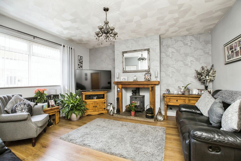 A good sized lounge with a window to the front and a log burning stove inset to the chimney breast