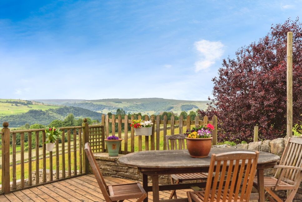To the rear and side is a large garden area running around the back of the house and flowing through over the top of the garage. There are brilliant views from every part of the garden across the fields and the valley. There is a mix of walled and fenced boundary along with mature planters and hedges. Decking sits on top of the garage area creating a perfect and peaceful viewing platform, ideal for family get togethers and evenings in the sun.