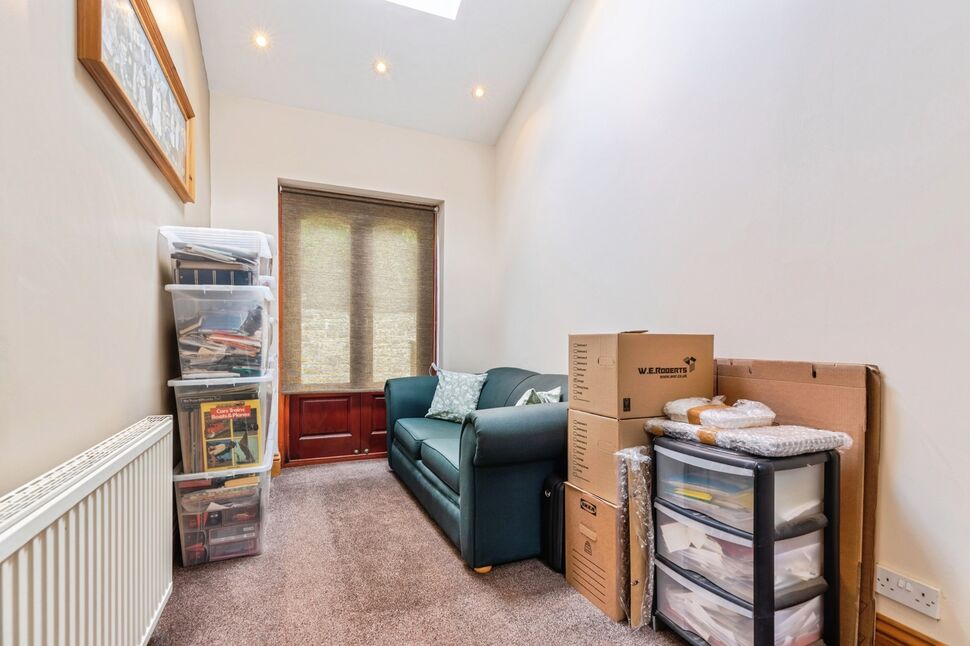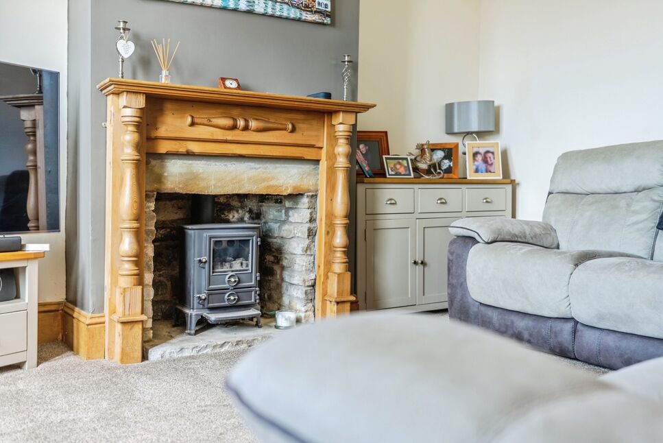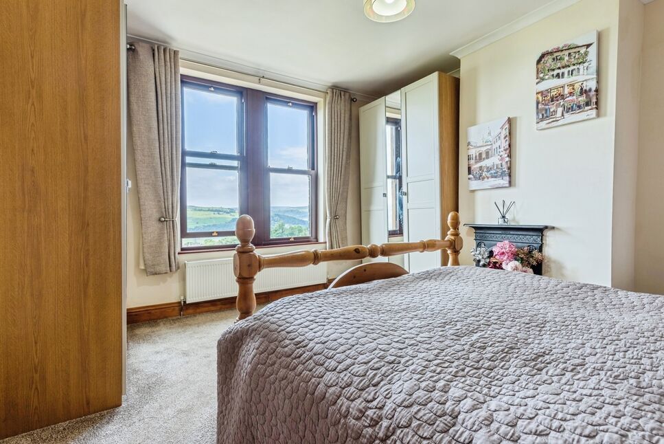 A lovely space with stunning views through the sash windows looking across the Luddenden valley and beyond. Large feature fireplace with inset stove and complementary hearth.