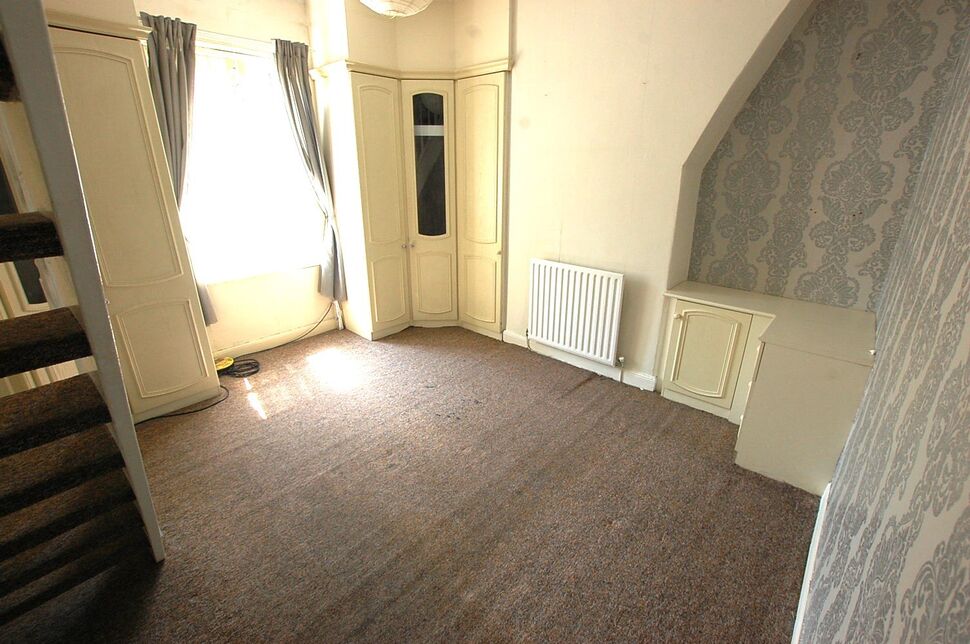 Fitted with a range of wardrobes, radiator, stairs to loft room, UPVC double glazed window to rear aspect.