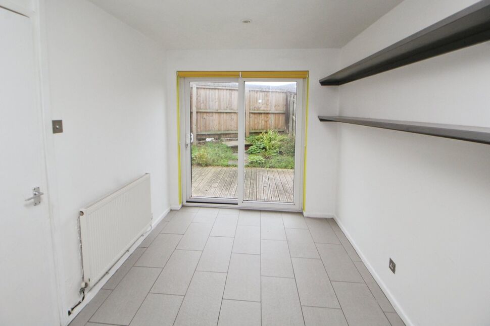 Tiled floor, UPVC patio doors to the garden and opening to the kitchen.
