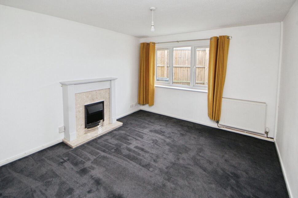 Fireplace, TV point, aspect over the garden and door to the dining room.