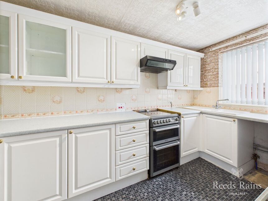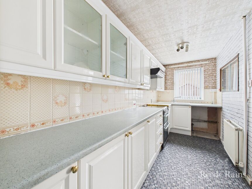 Stepping into the lounge, you’re greeted by a spacious and bright space, thanks to the double-glazed French doors that lead to the conservatory. Open archway leads to the kitchen. A built-in understairs storage cupboard and radiator complete this lovely room.