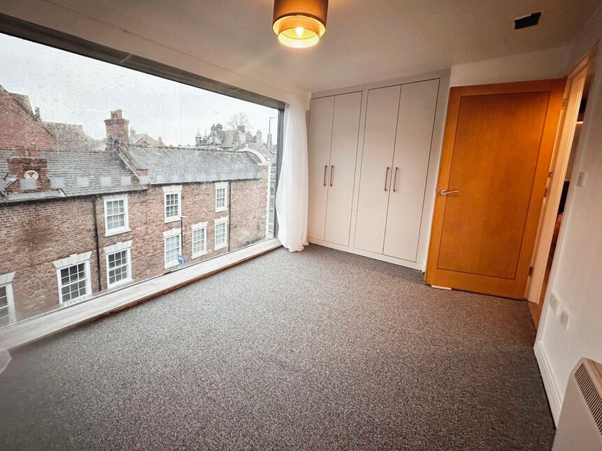 Carpeted flooring with a single panel radiator, built in wardrobes, huge window allowing in lots of natural light.